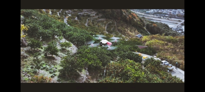 美麗書院の大筆パフォーマンスをドローンで空撮